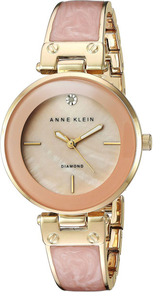 Кварцевые часы. Корпус выполнен из нержавеющей стали с PVD покрытием. Диаметр корпуса 34 мм. Циферблат украшен бриллиантом. Браслет выполнен из эмалированной нержавеющей стали с PVD покрытием.