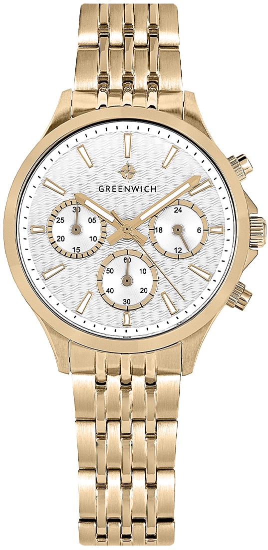 Часы женские кварцевые. Часы, минуты, секунды и дата. Перламутровый циферблат. Корпус из нержавеющей стали с PVD-покрытием. Размер корпуса 21 х 35 мм.