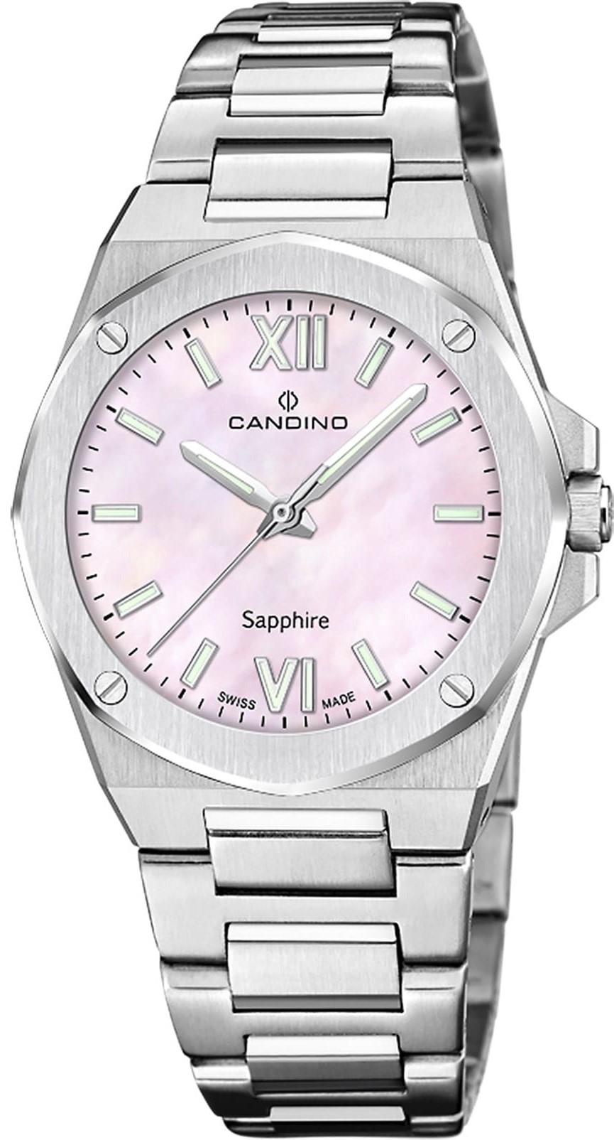 Кварцевые часы. Водостойкость WR 50. Стрелки и метки с люминесцентны покрытием. Корпус и браслет из нержавеющей стали. Диаметр корпуса 33.5 мм. Устойчивое к возникновению мелких механических повреждений сапфировое стекло.